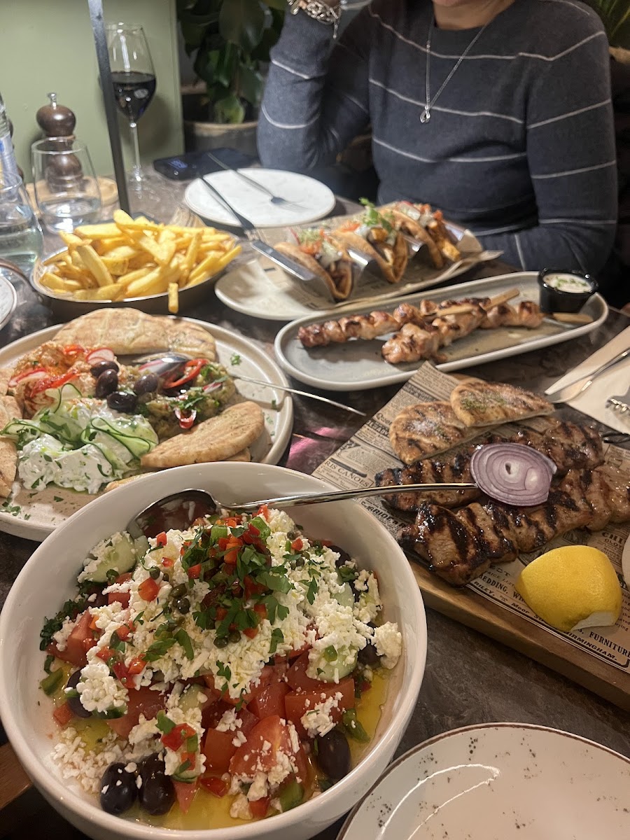 The servers are friendly and know their menu well. We received advice on each course it it was spot on. But frankly everyone was happy with everything we ordered. We hade a group of ten and there was not one weak dish across everyone from appetizers and cocktails to mains and desserts. The crispy feta and truffle halloumi stood out as appetizers. I had the souvlaki and it was perfectly seasoned and cooked with house made pita. Friends has the sea bass, lamb and steaks. All amazing. The pistachio cheese cakes for dessert was the bake favorite but I loved the vanilla crème and caramel which was amazing. Highly recommend.